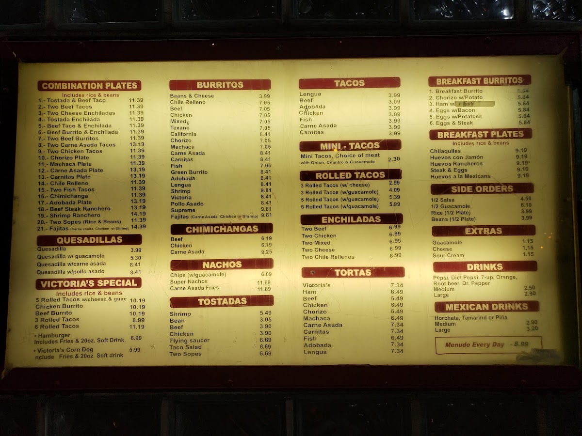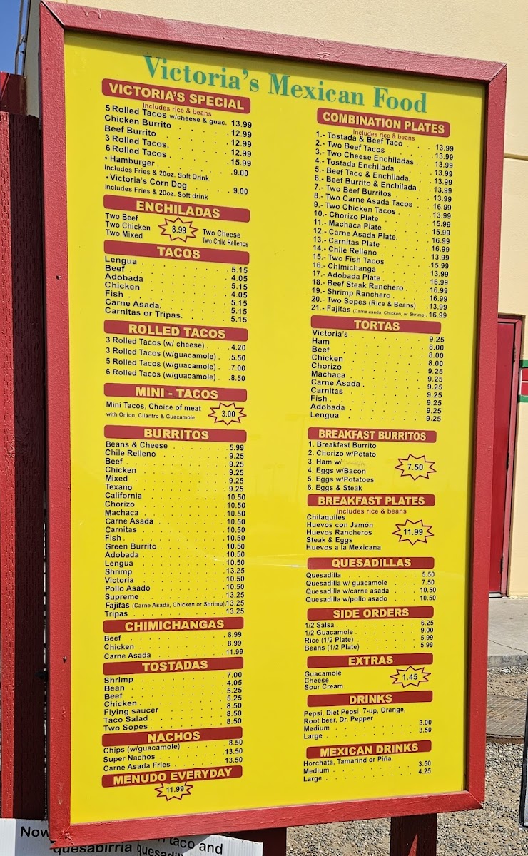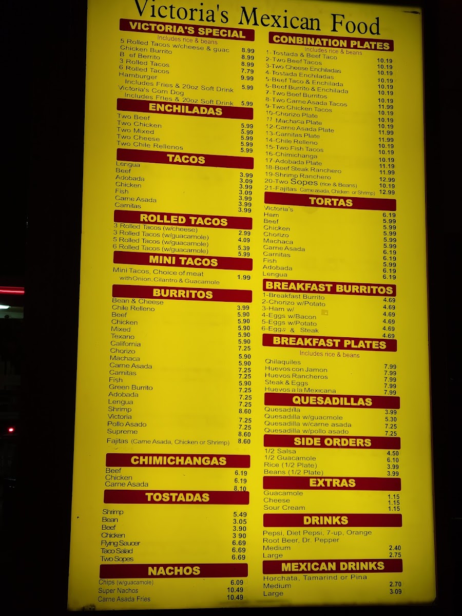 Welcome to Victoria's 24hr Mexican Drive Thru, your go-to spot for authentic Mexican cuisine in Merced, CA. Situated at 1060 W 16th St, this eatery promises deliciousness around the clock. The menu features an enticing selection of tacos, like the flavorful Lengua and satisfying Adobada, all made with fresh ingredients, despite temporary price hikes due to COVID-19.